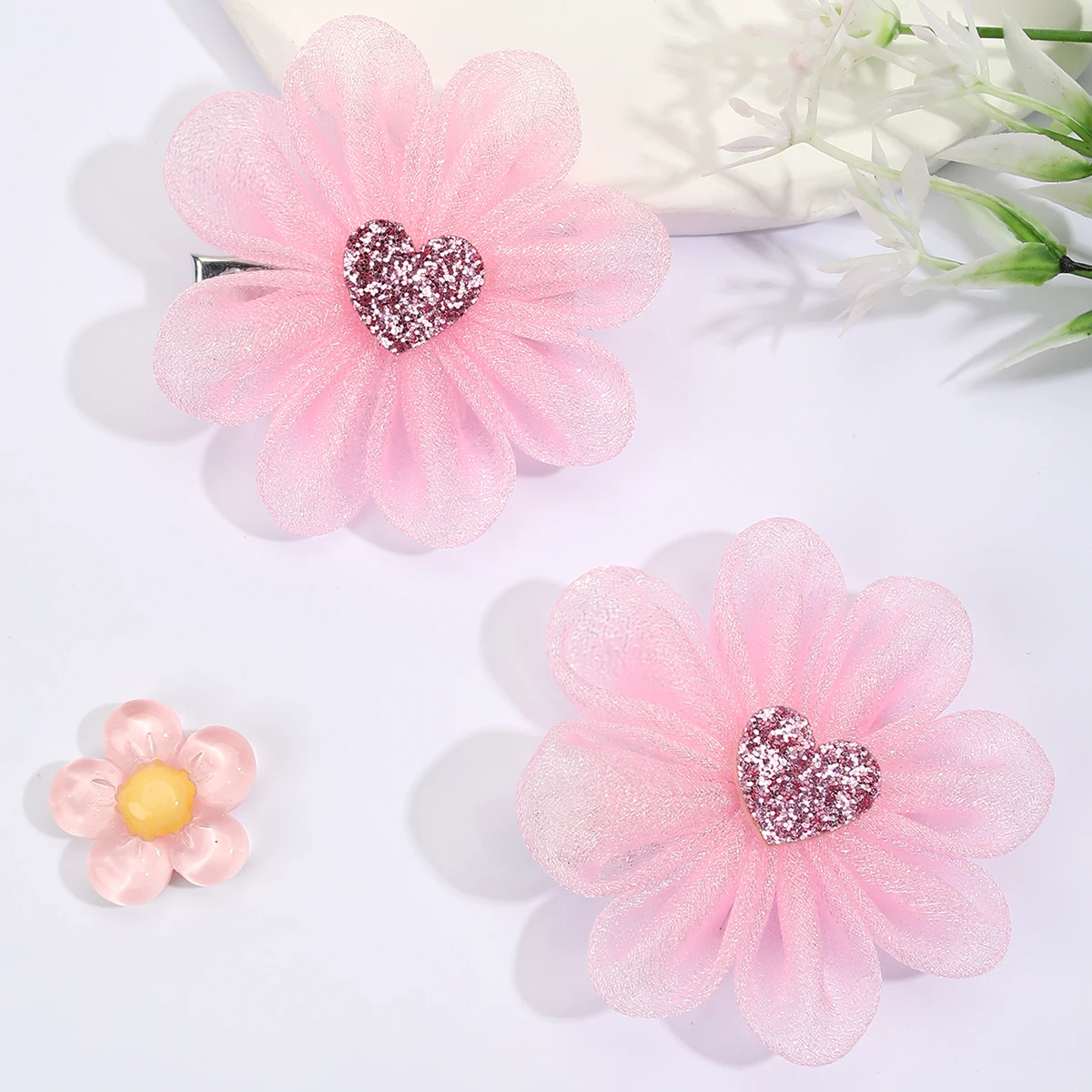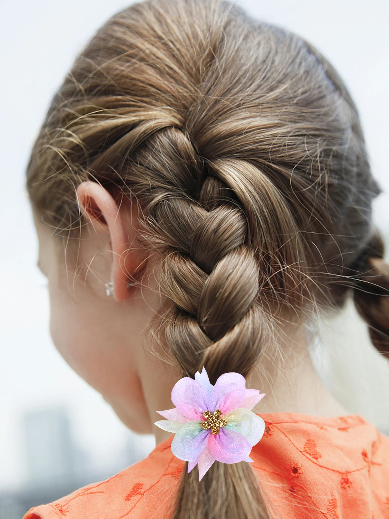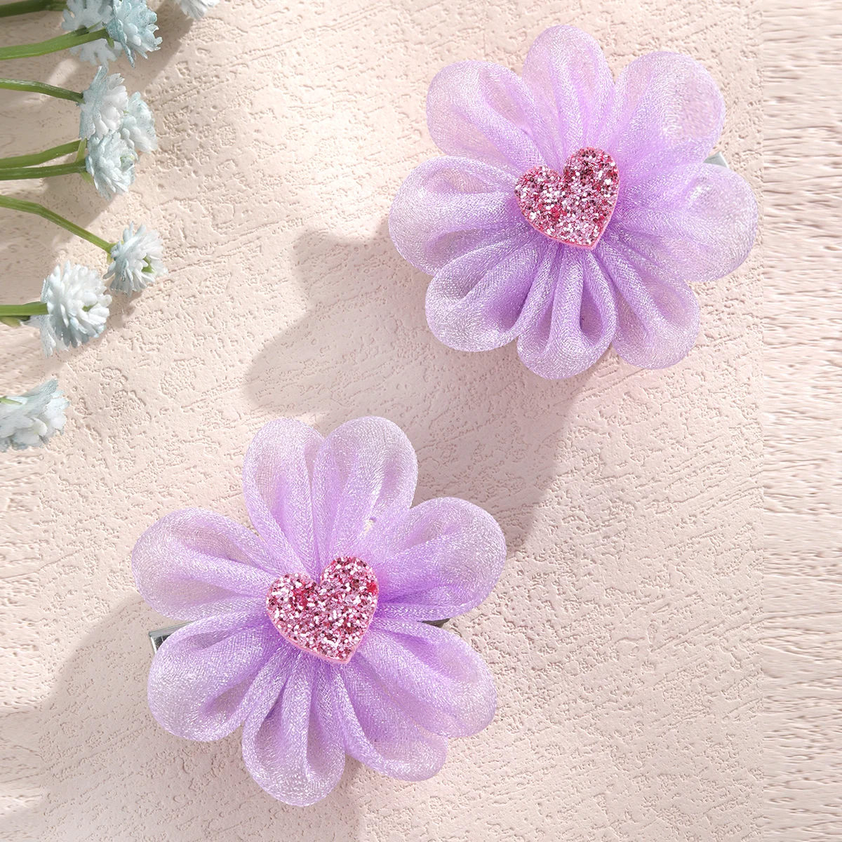 مجموعة مكونة من قطعتين من مشابك الشعر المزينة بزهور قوس قزح الترترية 🌈🌸، مثالية للفتيات الصغيرات لإضفاء لمسة لطيفة وملونة على إطلالتهن.
