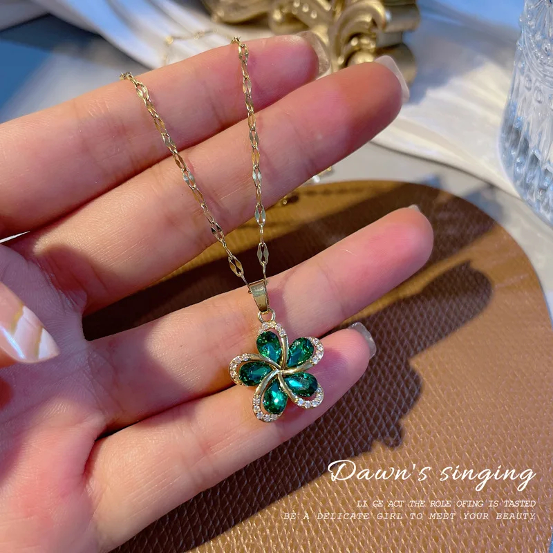 قلادة تيتانيوم دوّارة بزركون أخضر
