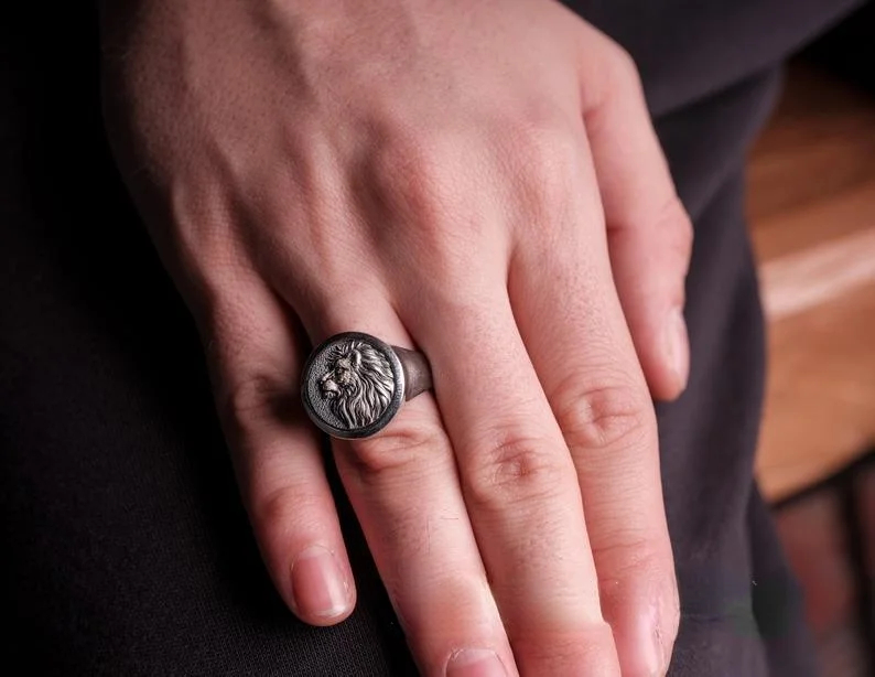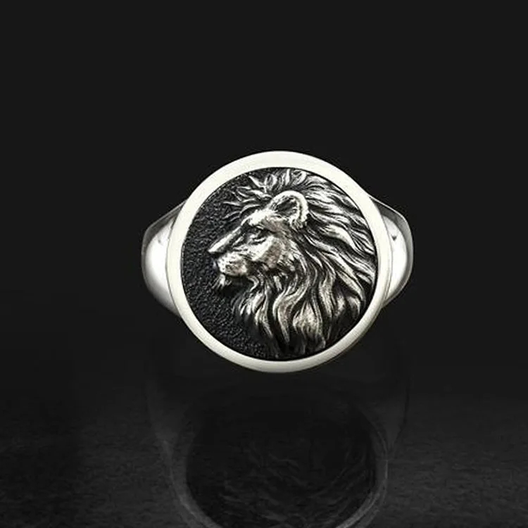 خاتم رجالي فضي مطلي برأس الأسد